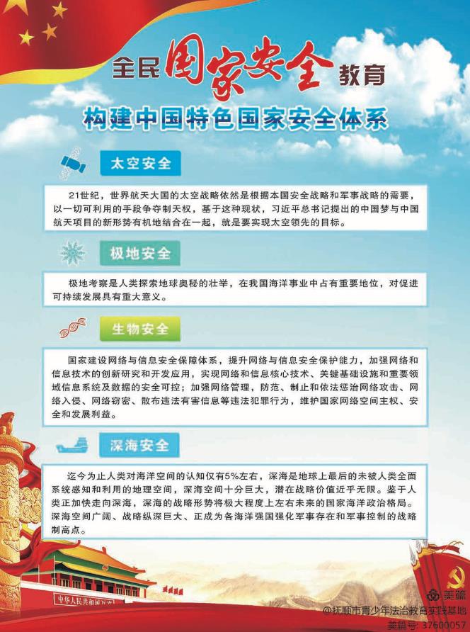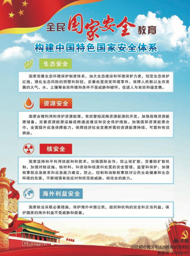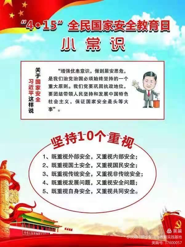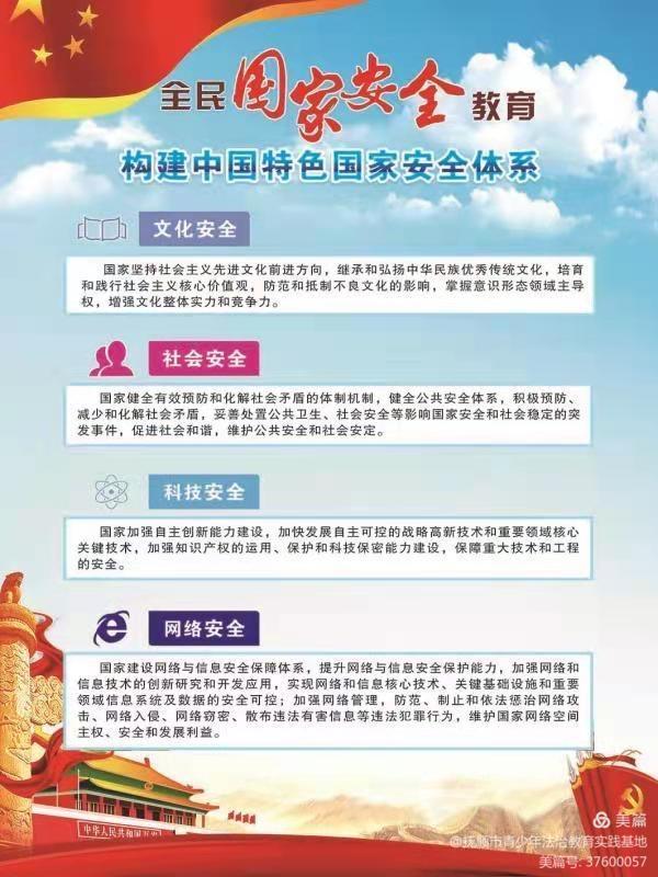 国家安全是安邦定国的重要基石,要实现中华民族伟大复兴的中国梦,保证国家安全,人民安居乐业是头等大事。2021年4月15日是《国家安全法》颁布实施以来的第六个“全民国家安全教育日”。为深入贯彻总体国家安全观,增强全市中小学生国家安全意识,树立国家安全观,抚顺市法治教育实践基地(抚顺市工读学校)组织开展“增强国家安全意识 共筑平安和谐校园”为主题的全民国家安全教育宣传活动,向建党一百周年献礼!
