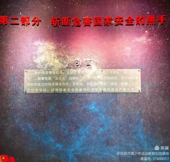 习近平总书记指出:“中华民族伟大复兴终将在广大青年的接力奋斗中变为现实”,然而我国国家安全形势面临许多新的严峻而复杂的挑战,维护国家安全成为新时期党和国家的重要任务。2021年1月,抚顺市国家安全教育展厅正式在抚顺市法治教育实践基地建成并投入使用。展厅分为三个部分。第一部分为“总体国家安全观”,以视频和展板的形式,全面的、深刻的诠释国家安全的涵义及其重要意义;第二部分为“斩断危害国家安全的黑手”,这一功能区域集中展示了现阶段国内国外相关窃取国家情报的精密设备,展示各种类型学生日常生活中见不到的监听、监视设备,并结合对应资料使青少年了解《反间谍法》相关内容;第三部分为“众志成城保卫国家安全”,这一部分则是以最具特色、体验性极高的形式呈现针孔摄像头、显示器、窃听器等监听、监视设备,让青少年了解生活中敌对分子监听监视行为,从而增强青少年自我防范意识。目前我校还结合青少年心理发展特点,研发出国家安全教育校本课程,更好地对学生进行国家安全教育,牢固树立国家安全观,使之成为每个人的一种自觉、一种意识、一种素质,使青少年成为一名合格的平安校园“小卫士”。