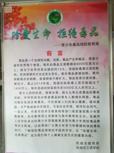 抚顺市工读学校制作的禁毒宣传栏
