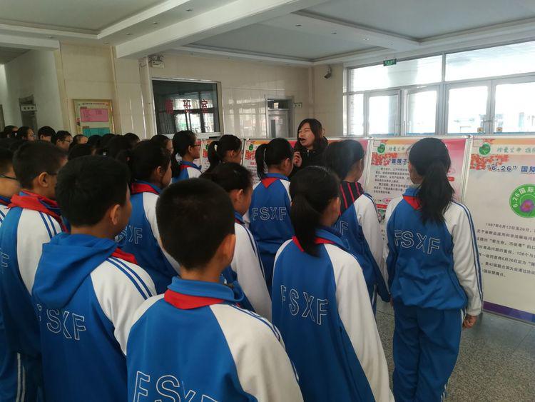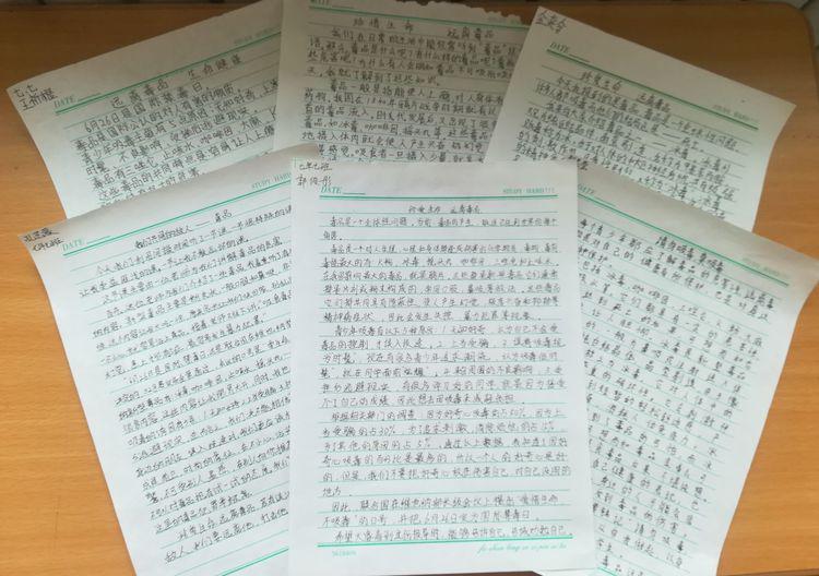 听过宋蔓老师的讲解,学生们课余时间不忘走到展板前讨论、抄写,加深记忆写体会,深刻感受毒品给自己和家人乃至社会照造成的影响。